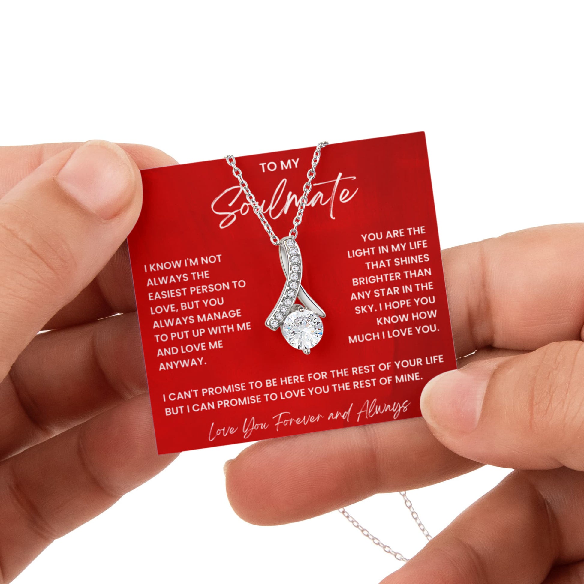 Message Card: I KNOW I'M NOT ALWAYS THE EASIEST PERSON TO LOVE, BUT YOU ALWAYS MANAGE TO PUT UP WITH ME AND LOVE ME ANYWAY. YOU ARE THE LIGHT IN MY LIFE THAT SHINES BRIGHTER THAN ANY STAR IN THE SKY. I HOPE YOU KNOW HOW MUCH I LOVE YOU. I CAN'T PROMISE TO BE HERE FOR THE REST OF YOUR LIFE BUT I CAN PROMISE TO LOVE YOU THE REST OF MINE. LOVE YOU FOREVER AND ALWAYS. Love, XXXXX.